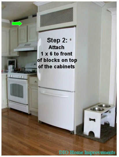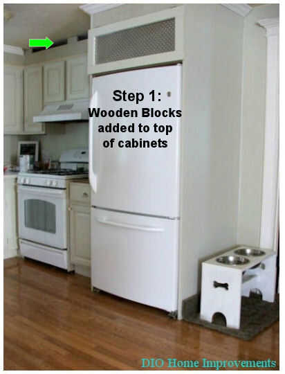 Comencé agregando madera a la parte superior de mis armarios para elevar la altura. He utilizado molduras en la parte superior y una moldura muy fina donde los gabinetes viejos con la madera nueva. He pintado los gabinetes hacia fuera en Sherwin Williams lana madeja y había añadido nuevo hardware. Construir un envolvente de refrigerador usando hojas de MDF y de la misma moldura que utiliza en los gabinetes. La puerta de la envolvente del refrigerador es simplemente un marco que hice y una hoja de Union Jack del metal de hoja que había dejado de un proyecto anterior (donde hice un diy aire volver cubierta del respiradero).