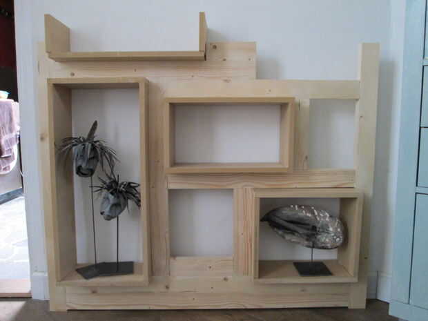 ¿Cada caja de prueba en el marco: encaja sin ser a apretado? El marco apoya las cajas en el centro. Las cajas extienden 7 cm en la parte trasera y frontal. Si es necesario hacer modificaciones. Ahora puede probar cómo se verá el resultado final, poniendo en algunos objetos.