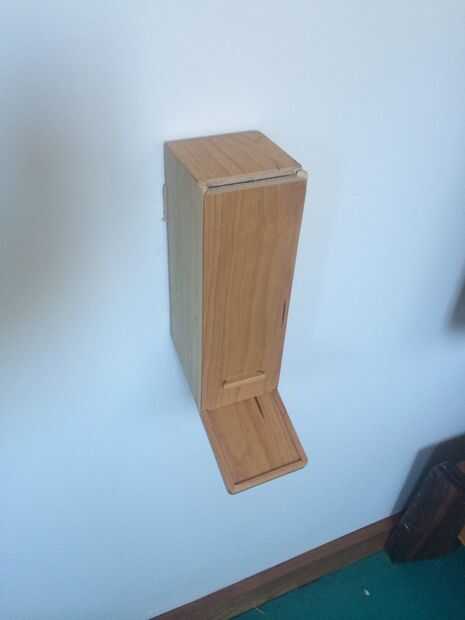 Quitar con facilidad de una pared con un taco francés para el relleno, el curio del condón tiene una puerta corredera frontal que libera un condón en la bandeja de recogida inclinada para la anticoncepción libre de complicaciones. Construido como un pequeño armario, también recupera el almacenamiento del condón de eso que queda oculto y por lo tanto difícil de encontrar, a la que es celebrada, prominentemente.