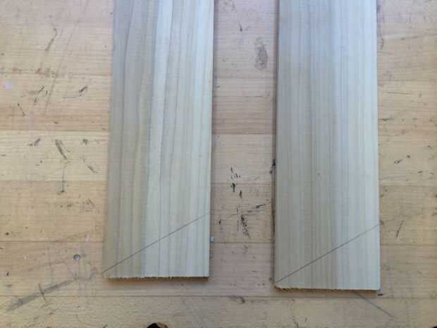 Cortar el ángulo de 15 grados en dos piezas laterales.