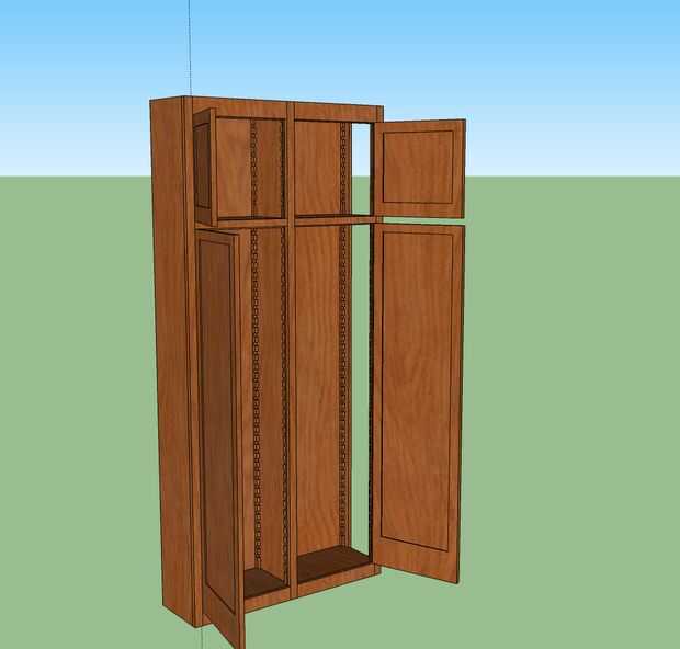 3/8 madera contrachapada para la parte posterior. Esto es en realidad opcional, pero añadí para desalentar ratones y los insectos entren en el gabinete. Necesitarás dos piezas si el gabinete es más de ocho pies de altura. Mi armario estaba a poco más de 8½ pies de altura (hasta alcanzar el techo), por lo que hace más difícil de usar madera en algunos casos.