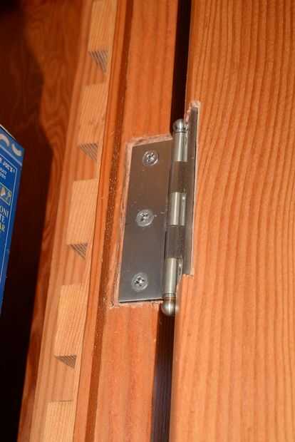 Este es un buen momento para cortar las muescas en los montantes finales (pero no el centro) para alojar las bisagras. Puedes ver las muescas en el archivo de cad. Yo no he dado las dimensiones o profundidad de las muescas porque dependen de las bisagras que se utiliza. Si se salta este paso, tendrás que hacerlo con cinceles más tarde que es más difícil y menos preciso. Ver las dos últimas fotos.