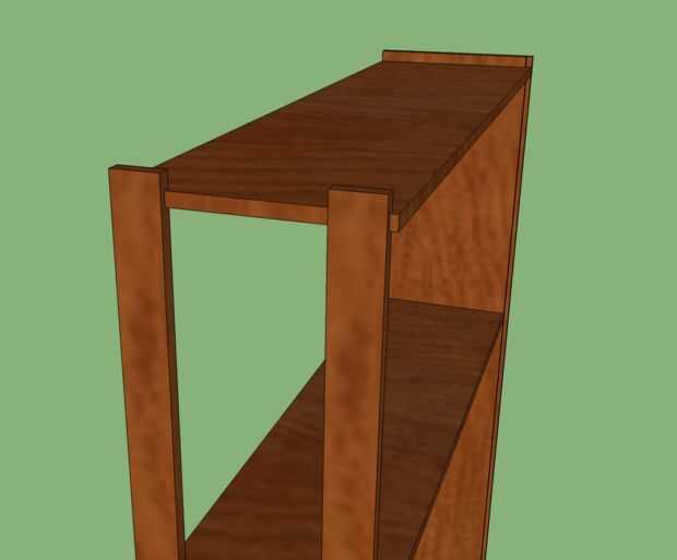 Nota: en la tercera foto se puede ver que el soporte trasero es compensado hacia adelante por 3/8" para dar cabida a la parte trasera. Si no vas a tener un panel posterior, ponga el soporte trasero hasta la parte posterior.