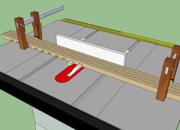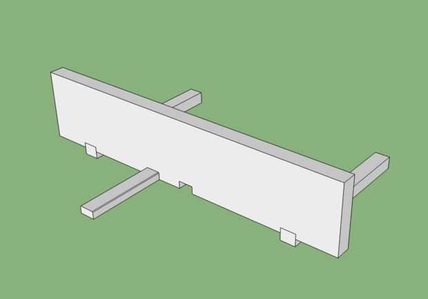 Las fotografías muestran la plantilla que se utiliza para cortar las muescas en los rieles. Es mejor sujetar los carriles juntos y cortar los cuatro juntos, para que las muescas coincidan siempre. De lo contrario, ligeras variaciones en cómo usted cortar los carriles individuales se suman y crean un sistema de apoyo parciales.