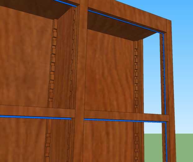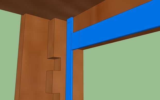 La primera imagen muestra las juntas resaltadas en azul. La segunda imagen es una imagen de detalle de los sellos desde el interior.