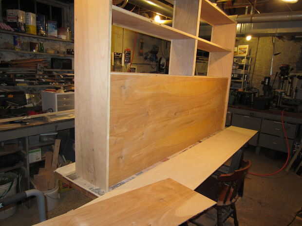 Instale las placas de respaldo. Debe ser empotrados en la parte posterior del gabinete para dejar espacio para los cables de viaje por el "falso" detrás. Pegamento y clavos.