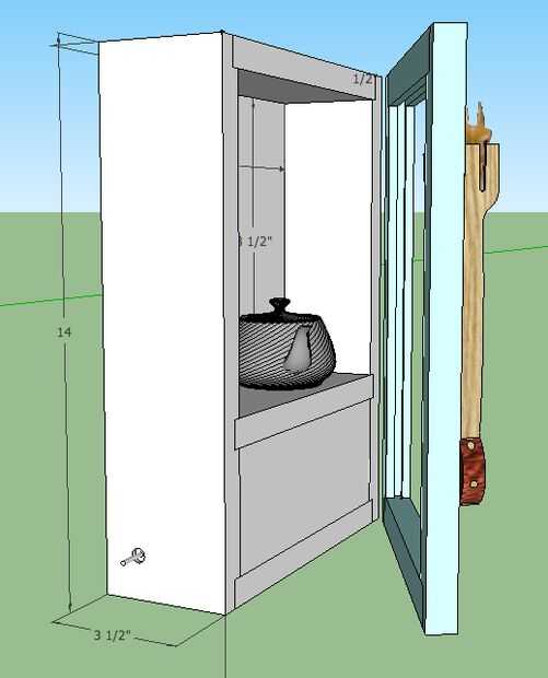 Primero diseñé el gabinete en sketch up. (cualquier geeks gráficos ahí pondrá las referencias de objeto). El pequeño interruptor en el lado elegir entre 3 opciones de luz: apagado, encendido, y 'luz activa'. La cavidad en la parte posterior llevará a cabo el paquete de la electrónica y batería.