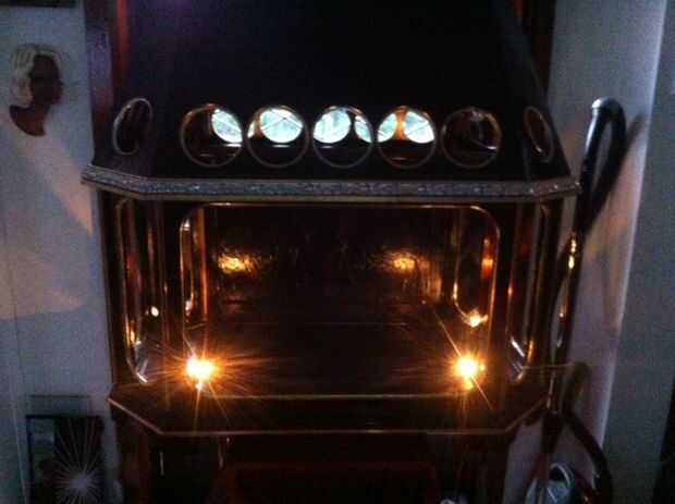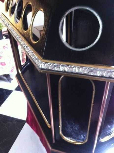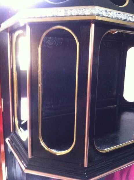 queria Mostrar todos los varios artefactos steampunk que he creado en un gabinete que mejor mejore sus cualidades y esto es lo que he venido para arriba con.  Esto no está todavía terminada... todavía que añadir es un espejo en la parte trasera, las ventanas redondas tendrá un vidrio manchado buscar con otros artículos que he creado.  El vidrio ha sido cortado pero debe añadirse.