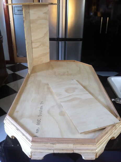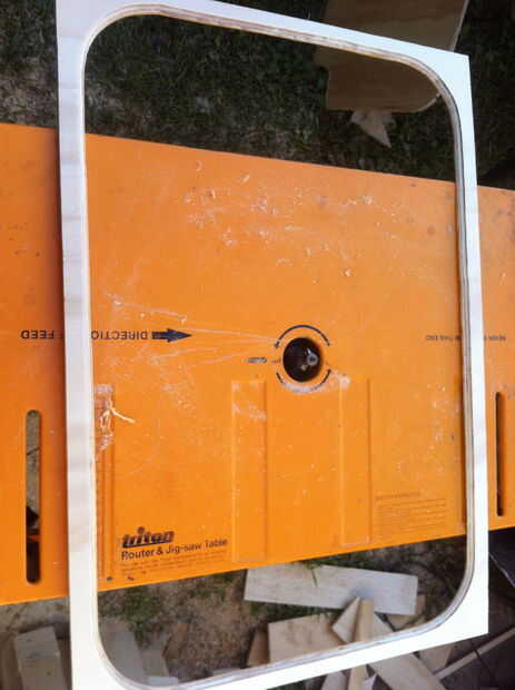 First off I created an octagonal base.  Corté un rectángulo de 900 x 600mm y luego cortar las esquinas.  Alrededor de la base enruta y pegado en unos 'pies'.  Los bordes de los pies fueron encaminados usando la broca en la imagen que dio el resultado que veis.  Sugerimos que pruebe diferentes brocas y más 'capas' si usted puede... verás este en donde he creado capas de moldes alrededor de la Copa.  Los paneles laterales fueron cortados para que coincida con la base.  Todos los ángulos para un octágono son 22,5 °. Cortar las ventanas para los insertos de vidrio necesaria crear una plantilla para que todas las curvas sería el mismo.  Para la plantilla he utilizado algunas tenía por ahí de un trabajo anterior de acrílico.  Primero corte los círculos usando una broca en una pieza de madera y taladrar un orificio central en el acrílico.  Luego envían el orificio.  Me uní a los agujeros por Frese a lo largo de otra pieza de acrílico atornillado a la plantilla para darme una línea recta a lo largo de cada lado del agujero. (Usted verá lo que quiero decir al mirar las fotos aunque la primera que se que corte en madera usted consigue la idea general.  La madera no es tan buena como el acrílico uno hice.)