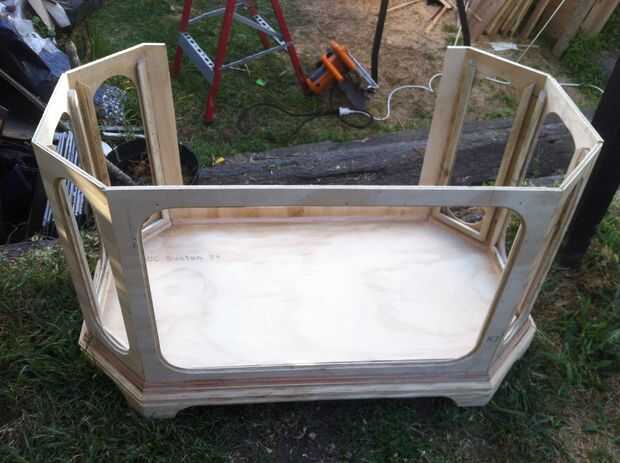 Gabinete de exhibición de muñecas Monsterhigh en la forma de un ataúd.Esto fue fácil de hacer.Me sacó 4 lats de plataforma y córtelos a la longitud deseada con el conjunto de la sierra a 15 grados. Pegado, había clavado y todas las uniones atornillad