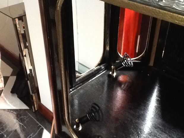 he utilizado halógenos dentro.  Los instalados aquí en la parte inferior de la vitrina, también instalará las luces del techo del gabinete.  Cómo creé el LED alrededor de los agujeros del altavoz se puede encontrar aquí.