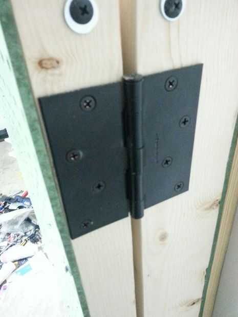 Tiempo para poner las bisagras. Las bisagras que escogí son para una puerta por lo que deben ser hasta el trabajo de sosteniendo mis herramientas. Me pareció la manera más fácil de hacer esto fijar las bisagras a la sección de puerta que desee. Hice una parte superior, uno en la parte inferior y uno en el centro. Con las bisagras completamente atadas a la puerta era sólo una cuestión de sosteniendo la puerta en su lugar y usar un lápiz para marcar uno de los orificios de la bisagra superior. Una vez que haces eso puede bajar la puerta y Atornille parcialmente el tornillo de montaje. Nuevo Desenroscar y vuelva a colocar la puerta y poner el tornillo con los dedos. Ahora atorníllelo en la mayor parte de la vía dejando algún espacio para ajustes menores como pones los otros tornillos en su lugar. Todos ellos apretar y probarlo. En este momento hice un ligero lijado en el interior de la puerta para eliminar las astillas de futuro. Noté que cuando cierro la puerta cerró de golpe tipo de duro así que cogí unos tapones de goma que vinieron probablemente con algunos equipos compró en algún momento y ponerlos opuesto a las bisagras para que no cerrarla y herramientas en el suelo. Poner en orden cualquier manchas de que ves.