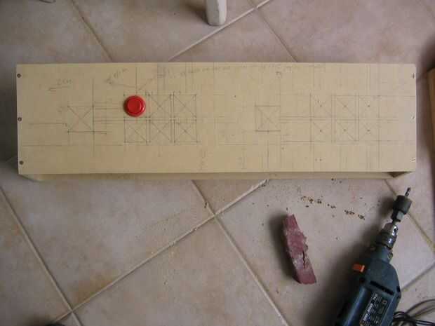Después de la construcción de la caja estima el lugar joystics y botones. Cada jugador tiene seis botones y eso es suficiente para la mayoría de los juegos. Se colocó un botón adicional en la esquina superior izquierda del panel de control como función de dejar de fumar.