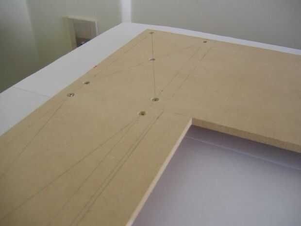 Por medio de dos guías MDF las fronteras pueden fijarse en ellos con tornillos (ocultar las cabezas de los tornillos para obtener un mejor acabado). También se necesita un buen lijado.