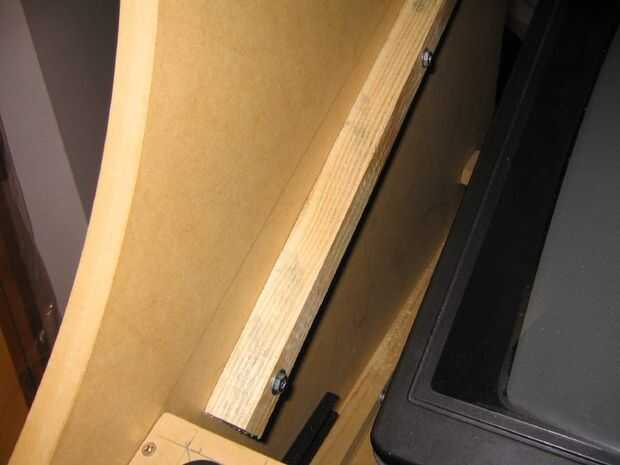 En el gabinete instalé a dos guías de bisel en cada lado. Los bordes del bisel descansan sobre esta guia.