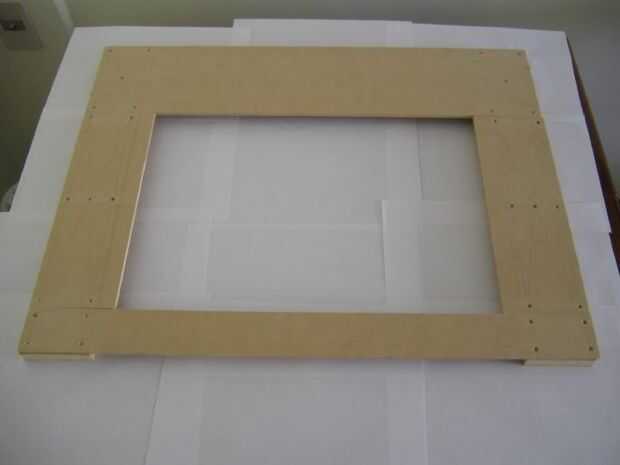 Lo primero que pensé el bisel fue obtener una hoja rectangular de MDF y hacer un agujero rectangular en su interior con la sierra caladora. He encontrado un problema con este enfoque: el acabado. El bisel es una de las cosas más visibles en el gabinete por el borde interno debe ser perfectamente cuadrado (con cortes rectos). Aunque con práctica es posible hacerlo con la sierra caladora es mucho mejor crear el bisel con cuatro marcos y luego adjuntarlos junto.