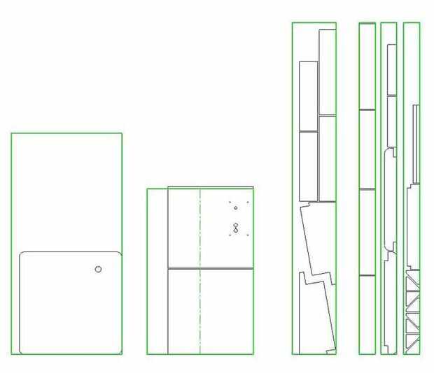 He añadido una segunda imagen de diseño para que pueda ver cómo conseguir las partes necesarias de las dos 2 x 4' 3/4" espesor MDF hojas (fibra de densidad media). Esto hará que la unidad muy pesada, pero es la manera más barata y más sencilla de construir un gabinete de la arcada. Si iba a les producir en masa, se trata de cómo me gustaría ir :)