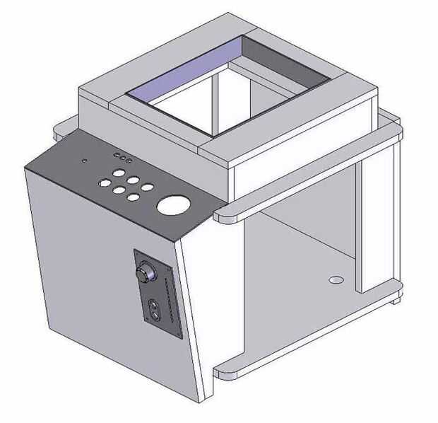 usé 20 tornillos de 1 1/4 de pulgada hoja roca y epoxy de 5 minutos para los subconjuntos. 3 tornillos suben a través del fondo en las piezas laterales y 2 bajar por las repisas laterales. El gabinete del monitor no está conectado mecánicamente con el resto de la unidad, pero cubrirá los 8 tornillos pasando por los estantes laterales. Es mejor guardar todo boca abajo hasta que usted instale las ruedas. Las faldas delanteras y traseras no son terriblemente fuertes.