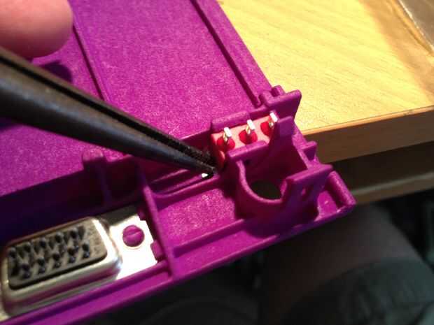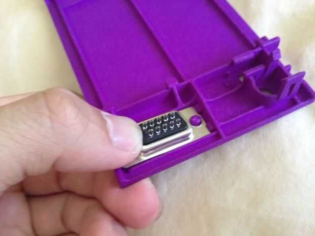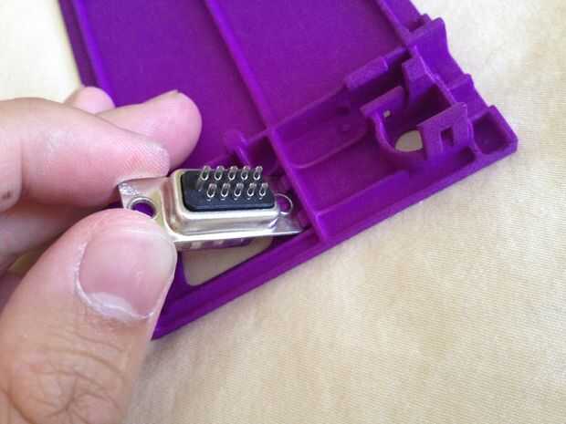 • Asegúrese de que su orientado correctamente, inserte un extremo del conector sub-d 15 pin como se describe en la primera foto y luego pulse en (este enchufe de los controles del jugador 2 es opcional).