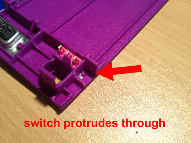 • Presione el interruptor en su posición, asegúrese de que el cuerpo sobresale a través de, ver foto.