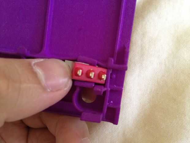 • Inserte el interruptor rojo la misma forma su posición, gire el ensamblaje alrededor y deslice el interruptor para caber a través del orificio.