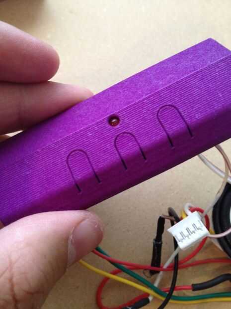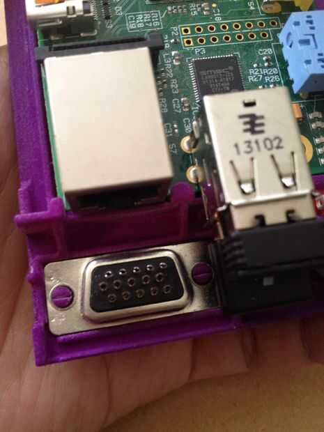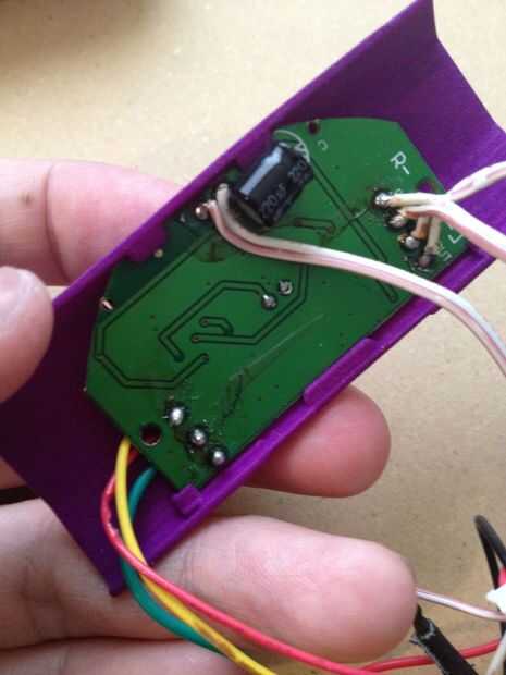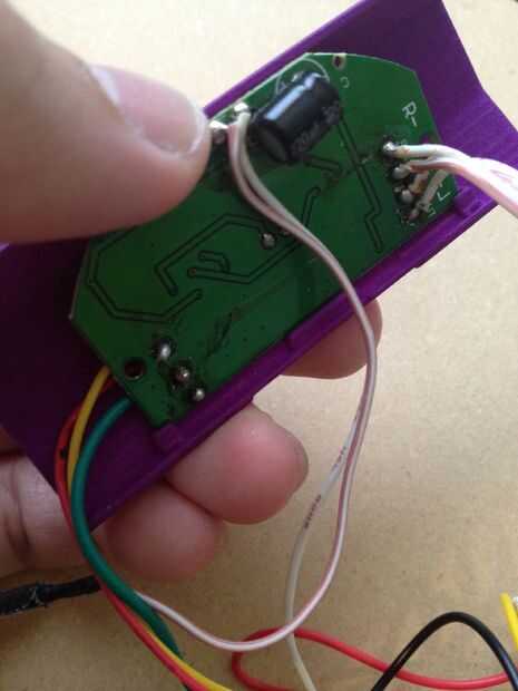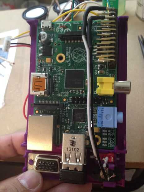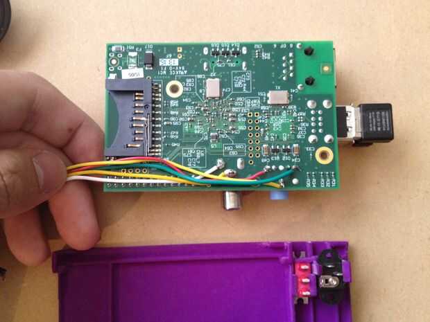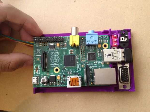 • Inserte la frambuesa pi en la parte trasera y soldadura de los cables de alimentación.
