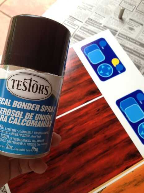 • Cuando el adhesivo esté seco, cortar la etiqueta alrededor de la moldura T con un cuchillo nuevo de x-acto y quitar las calcomanías de exceso, más Micro Set puede aplicarse alrededor de los bordes según sea necesario.