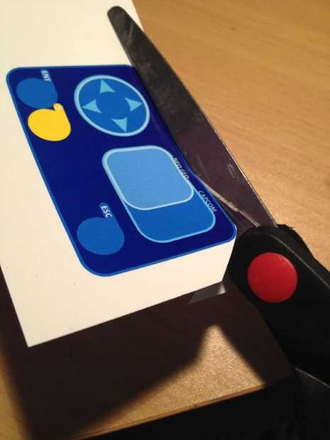 • Para el panel de botones, corte la etiqueta alrededor del diseño.