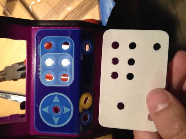 • Perforación de los agujeros en la hoja de la etiqueta en el centro de cada botón, esto le ayudará a alinear la etiqueta para la colocación y la aplicación alrededor de los orificios