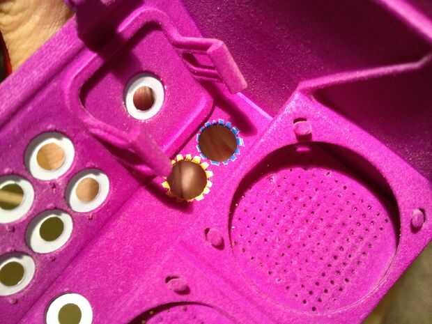 • Corte las aberturas alrededor de los orificios de botón y aplicar más Micro Set, doblar la etiqueta a través de los orificios en la parte trasera con un cepillo.