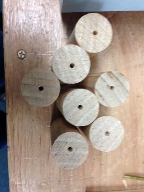 Cortar las siete piezas de espiga, cada 60mm de longitud, luego utilizando los agujeros guía de taladro a través del centro de la clavija de 30mm de profundidad.