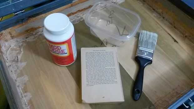 Varios papeles (utilicé una copia ruina de Tale of Two Cities, mapas y libros un par de niños)