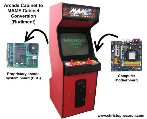 Yo estoy simplificando, pero por definición puede ejecutar sólo un juego en un momento en un gabinete de la arcada. Si quieres ejecutar otro juego en él, deberás cambiar el hardware propietario dentro. Pero ya que estamos en él, ¿por qué no sustituir todo el hardware patentado con un ordenador ejecutando MAME?