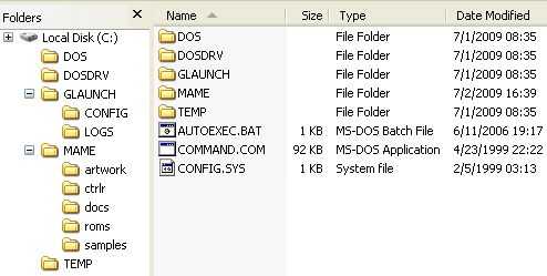 - Además de esto estoy usando Mame para Dos. Hay muchas versiones diferentes, dejar que Google se (o Bing se) o usted puede utilizar esta versión aquí. Después de descargarlo, descomprimirlo en una carpeta llamada MAME en la raíz de la unidad de disco duro (es decir C:\). Luego copie todos los ROMs de tus juegos en la carpeta MAME llamado ROMS. FreeDOS y MAME para Dos conforman el back-end.