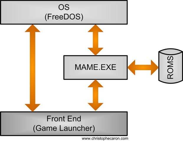 Además de los juegos que son de hecho archivos de ordenador llamados ROM que contiene una copia de los datos de un chip de memoria de sólo lectura de la placa principal de un juego de arcade, estoy usando tres programas diferentes: