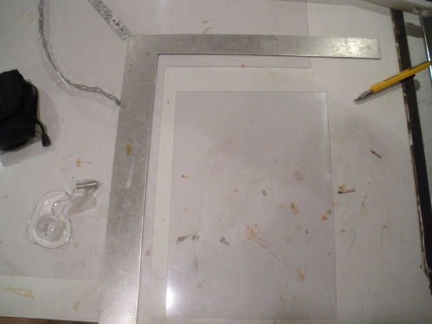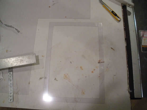 -De los 50mil transparente plástico, cortar 2 rectángulos de juego, luego cortar el recteangles interno dejando 1" espesor fronteras. Estos son los marcos de las puertas.