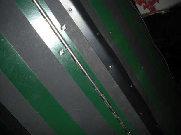 -La bisagra se une con tornillos y tuercas a uno de los tableros duros de 6,25 "x 37" y a uno de los tableros duros de 6,25 "x 34".