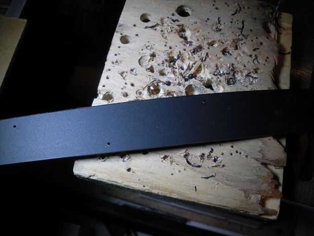 -Coloca las tiras ahora dobladas sobre una costura y utiliza los agujeros ha perforado ya como guías para los agujeros piloto en el tablero duro.
