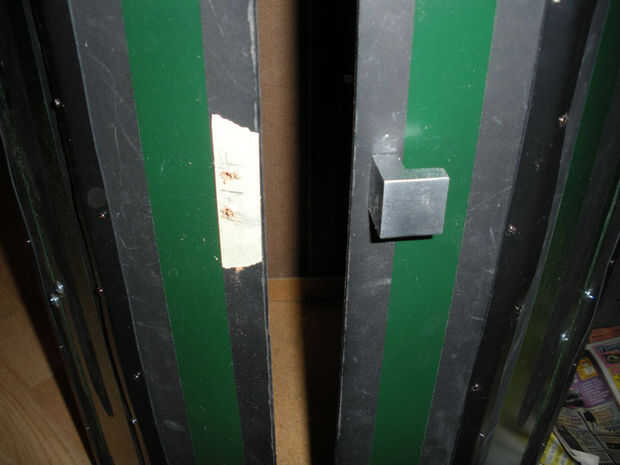 -La manija de la puerta, encontró algunos aluminio fresco unos en Home Depot, había centrado al patrón pintado y había atornillado en según instrucciones.