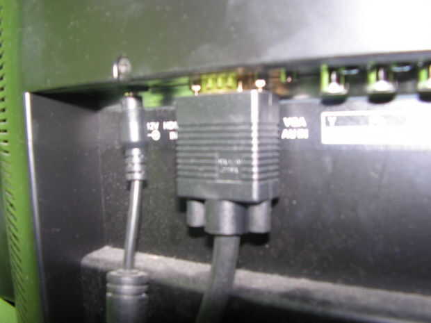 Para conectar la computadora al televisor, debe conectar el cable VGA a partir de la computadora a la TV donde el puerto VGA se encuentra en la parte posterior y para conectar su computadora al punto de poder (junto al enchufe de la tv conectada)