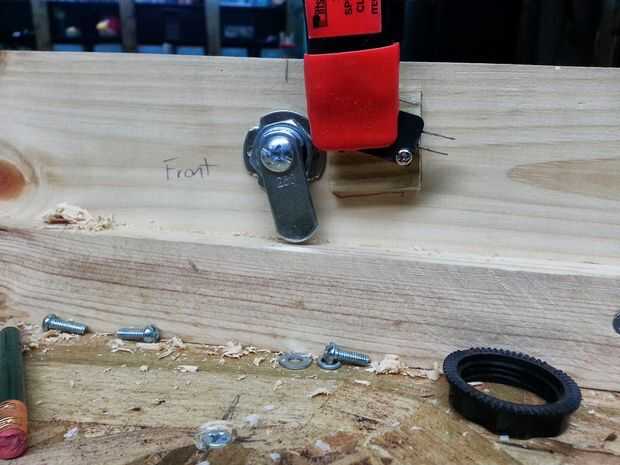 Había montado mi botones de monedas en la caja debajo del panel. Esto evita que el panel de que menos tiempo. simplemente decidir donde le gustan y perfore los agujeros con su forstner 1 1/8" bit.
