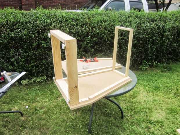 construir un refuerzo superior de tablas de 1 x 2, 24" de ancho por 13 de profundidad. Este será el soporte para la parte superior.