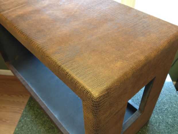 Como admitido, no tengo mucho de una oportunidad para tomar fotos del proceso de recubrimiento debido al corto tiempo de trabajo en el adhesivo, pero he incluido unas fotos terminados. Lo último que elegí para armar el gabinete era instalar una pieza adicional de la madera para ayudar a fortalecer el panel superior donde se encuentra que el gato sería enchufado o desenchufado bastante a menudo y el apoyo adicional sería beneficioso.