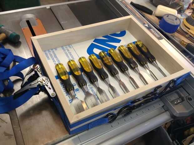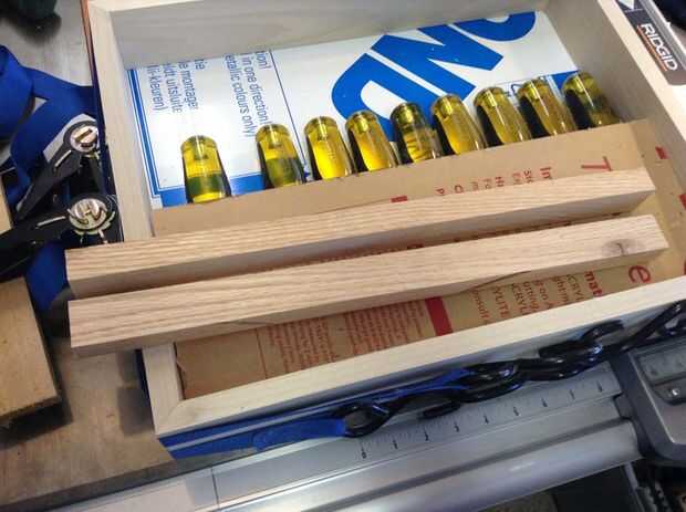 Mientras que fue afianzado con abrazadera, he medido y cortar el material para la puerta y los carriles de cincel.