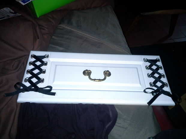 recientemente me interesé en "corset piercing" donde poner anillos dentro y fuera de la piel y poner cordón o a través de la cinta y atar en un arco, porque soy un chico y no creo me convendria me startedto pensar en lo que podía hacer para conseguir lo mismo pero con lo extraño en busca , Pintó mi armario hace mucho tiempo y decidió hacerlo en eso ya que el plan original de la pintura el alto piezas negro no era posible porque quedaría sin pintura y tiempo.