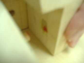 -Los dos últimos cuadros explican cómo marcar posiciones para los agujeros, usando la pintura e inserta tacos, coloque un poco de pintura en el extremo de la espiga insertada, luego sostiene la pieza frente a su posición final, piezas de disco los dos juntas. Después de tirar de ellos alejados uno del otro el orificio deben marcar posiciones.