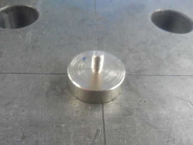 Primero moler los mangos en la forma correcta, después de que la perforación de los agujeros para el magnetismo. La cual magnetics pedido tenía un extremo del cable. Golpeó el extremo de la magnética en los agujeros de los mangos
