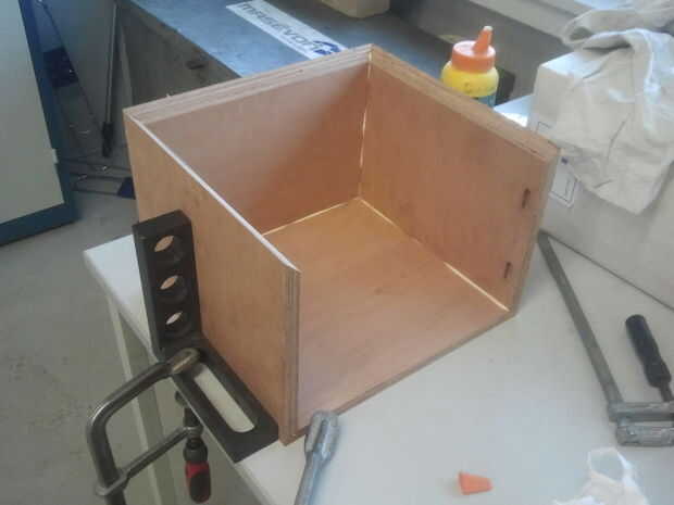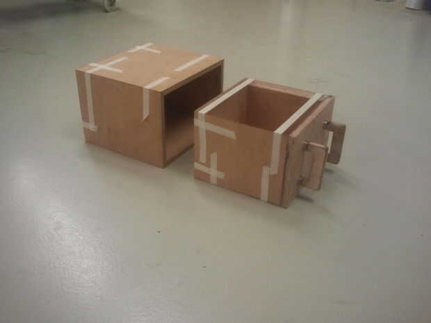 Pega el gabinete y cajón con houtlijm Bizon, después de que terminé con una dremel y lija.