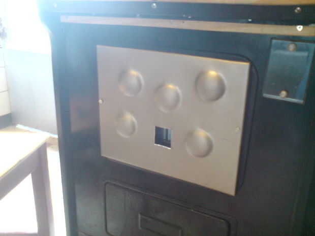 Luego quité los controles viejos que eran horribles e instalación mi propio. Usé una bisagra muy largo para sujetarla en la parte inferior por lo que si algo sale mal puedo solucionarlo rápido fácil. Me gusto que lo hice porque necesitaba hacerlo tres veces ya! La junta fue lo suficientemente amplia como para pegar entre los dos lados y no necesita mucha fuerza para tirar de él de nuevo necesidad de bloqueos o algo.