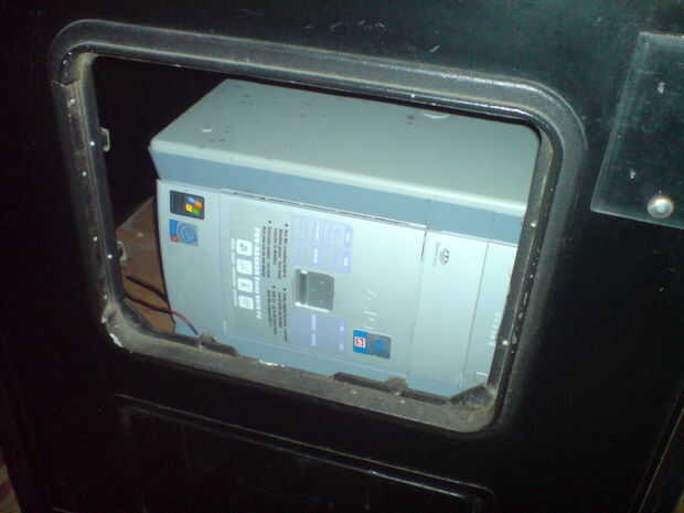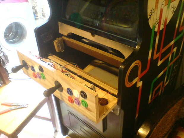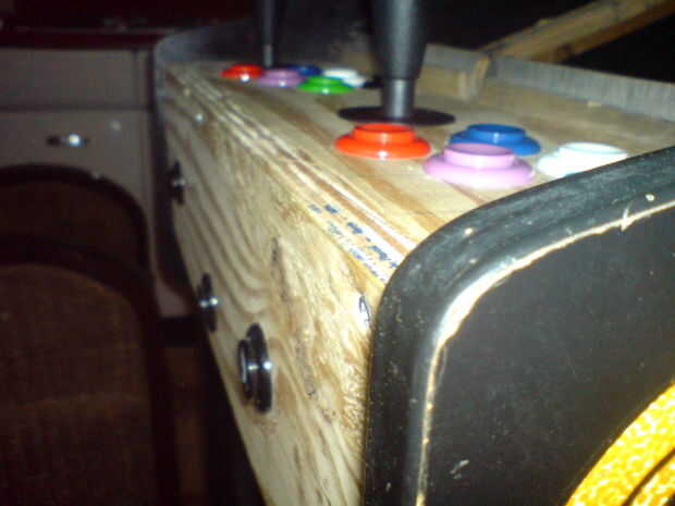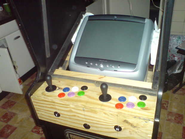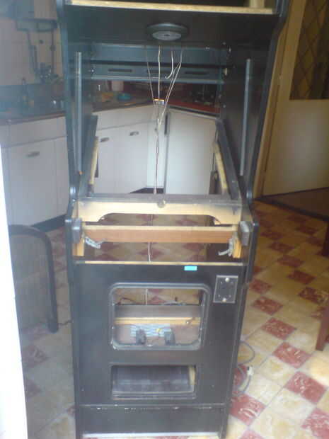 Entonces la puerta de la ranura de moneda fue quitada y puse mi equipo allí en el lado que se mantiene en su lugar por un par de vigas de madera. No muy guapa así que mi papá hizo una cubierta agradable para mí de cinc con un agujero para el botón de encendido... Necesito encontrar algo de botón grande para encender mi ordenador. Mi monitor es detrás del vidrio y mis altavoces del ordenador que simplemente puso en la parte superior del monitor y graba firmemente hasta que encontrar unos mejores. Pero porque están detrás del vidrio no puedo activarlos para que sean siempre en. Es una cosa buena que tienen botones de alternar.